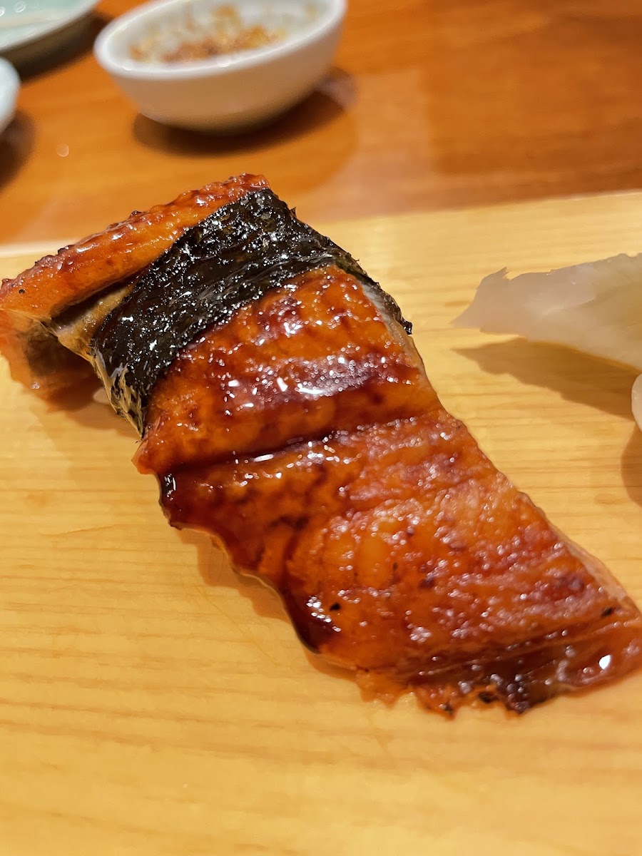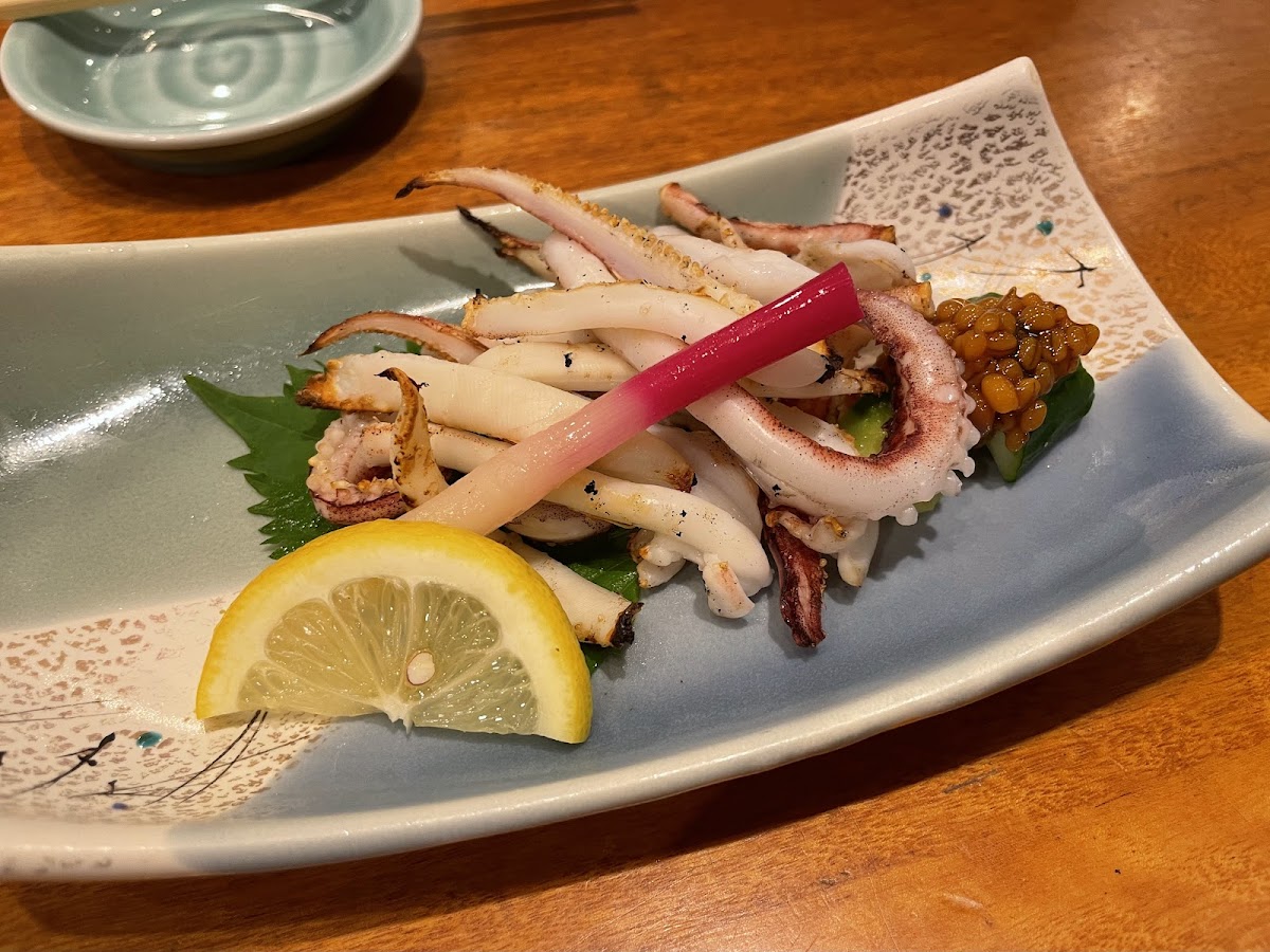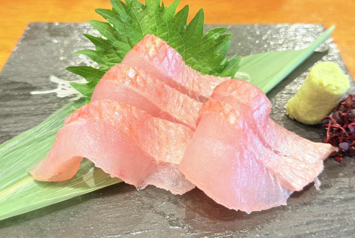 For seafood enthusiasts, the イカゲソ塩焼き (Grilled Squid Tentacles) is a standout dish, offering tender, smoky squid grilled to perfection. To complete your sushi experience, the 刺身 鯛 赤身 (Sashimi Tai Akami) is another excellent choice, with its beautifully sliced red snapper that’s as fresh as it is flavorful.