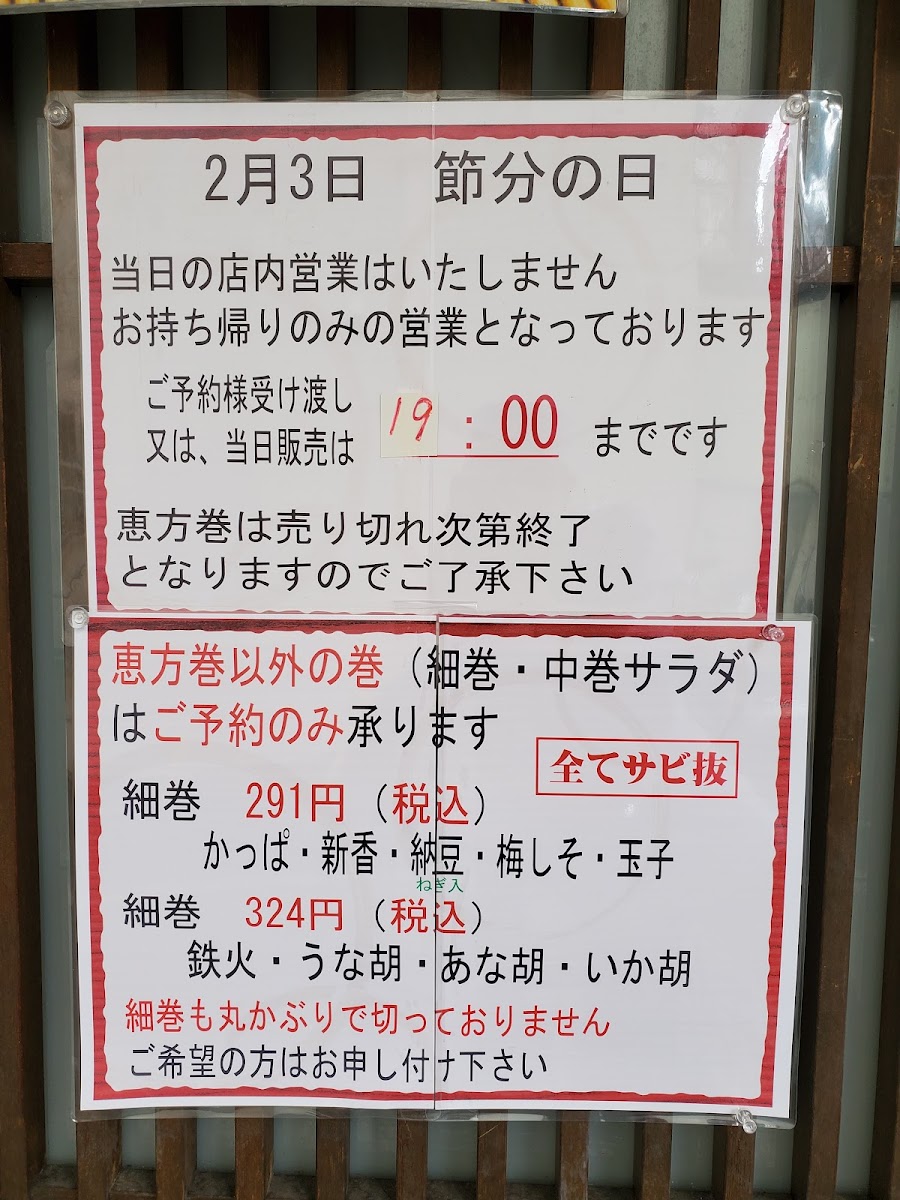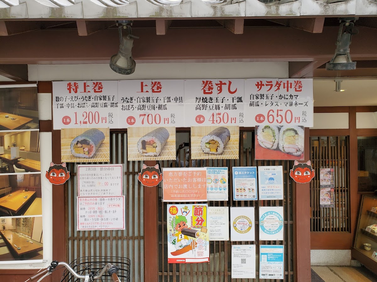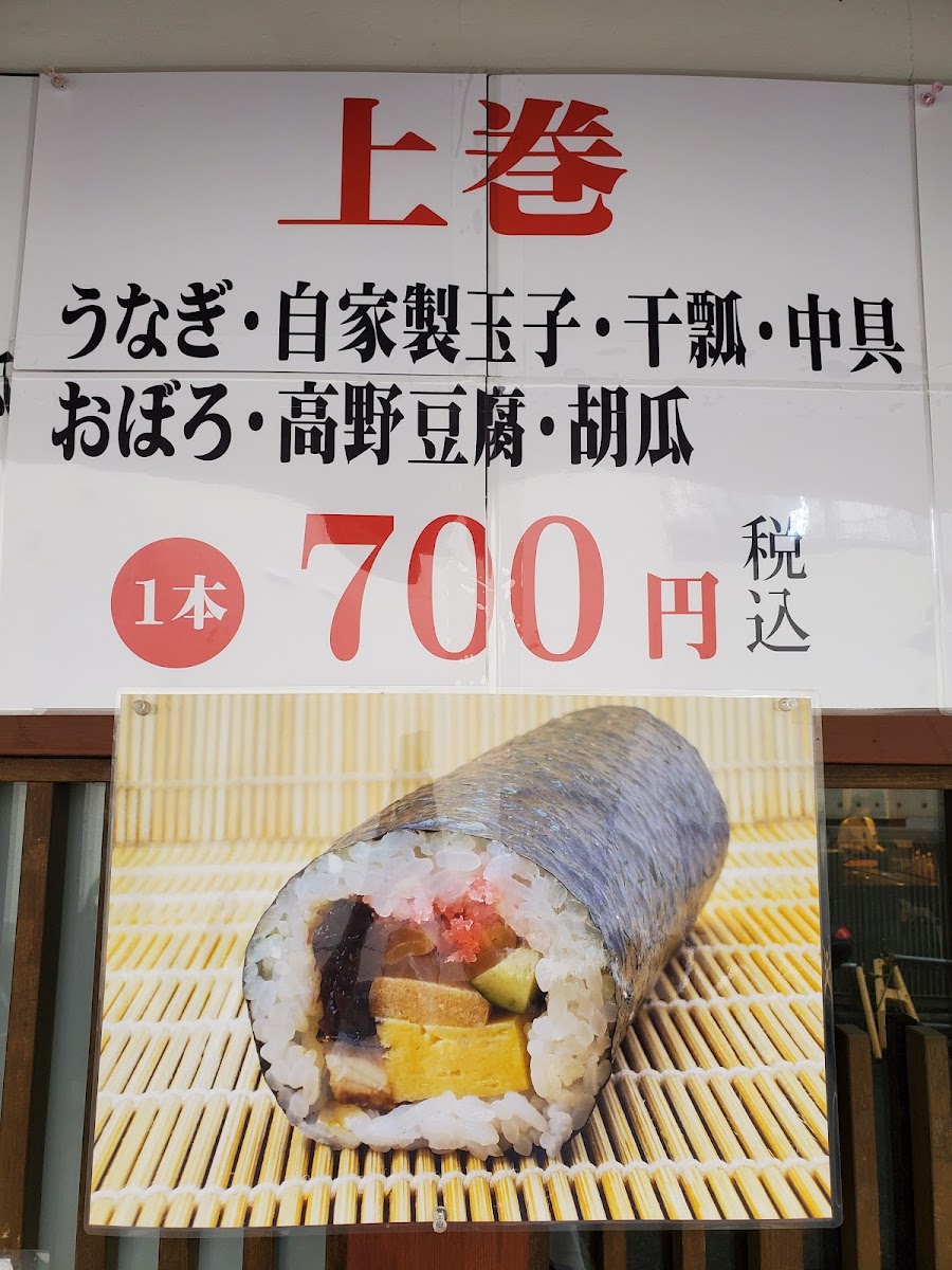 玉子・うなぎ・椎茸・おぼろ・かんぴょうすべて手作りの名物巻!ボリュームもあり持ち帰りにも好評です◎